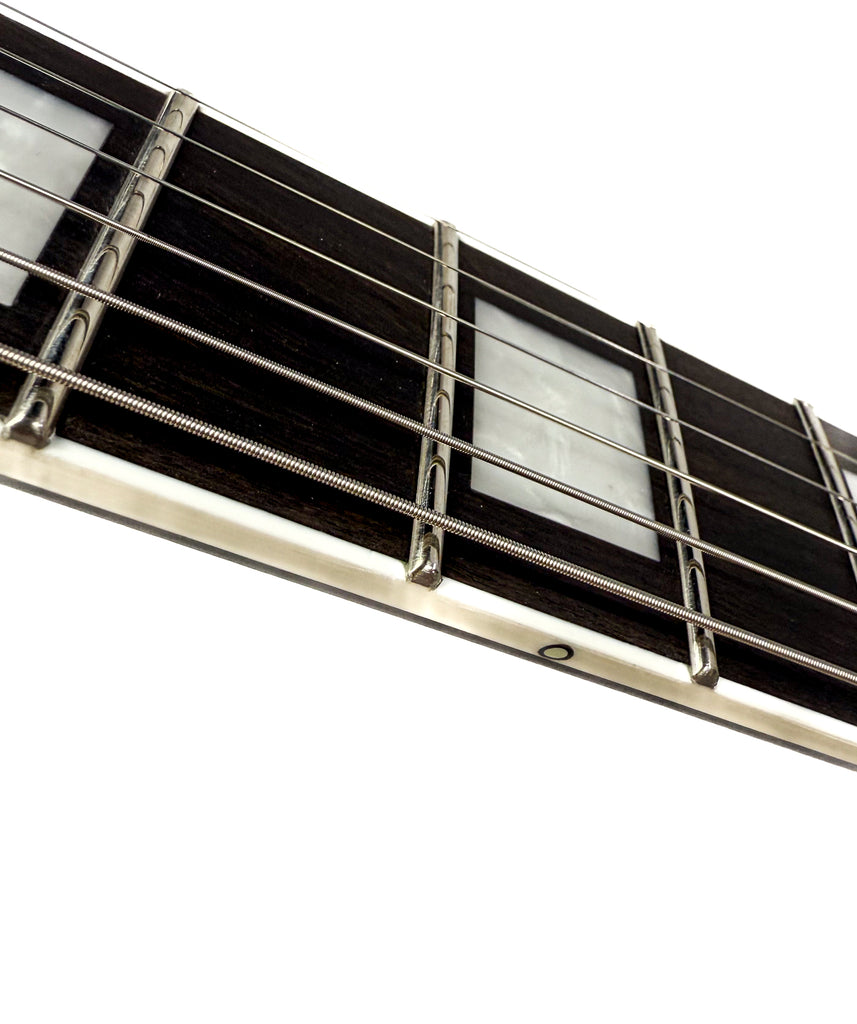 - NECK: mahogany | ebony | white binding | pearloid bock inlay